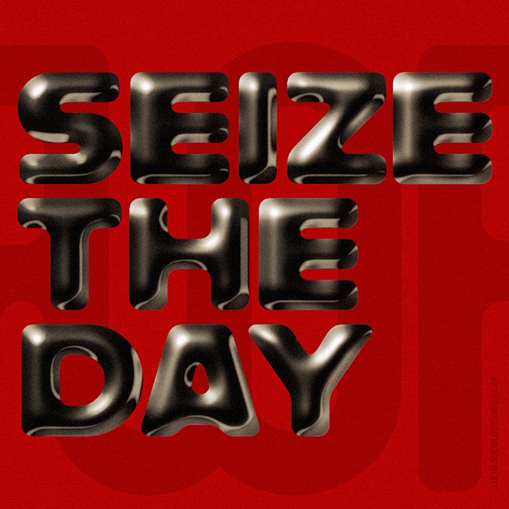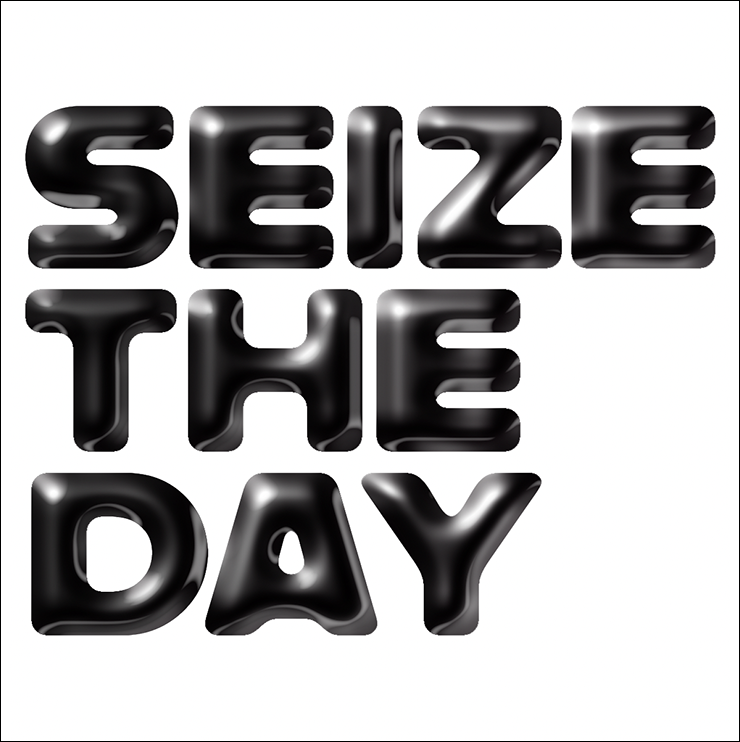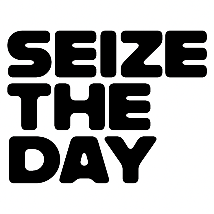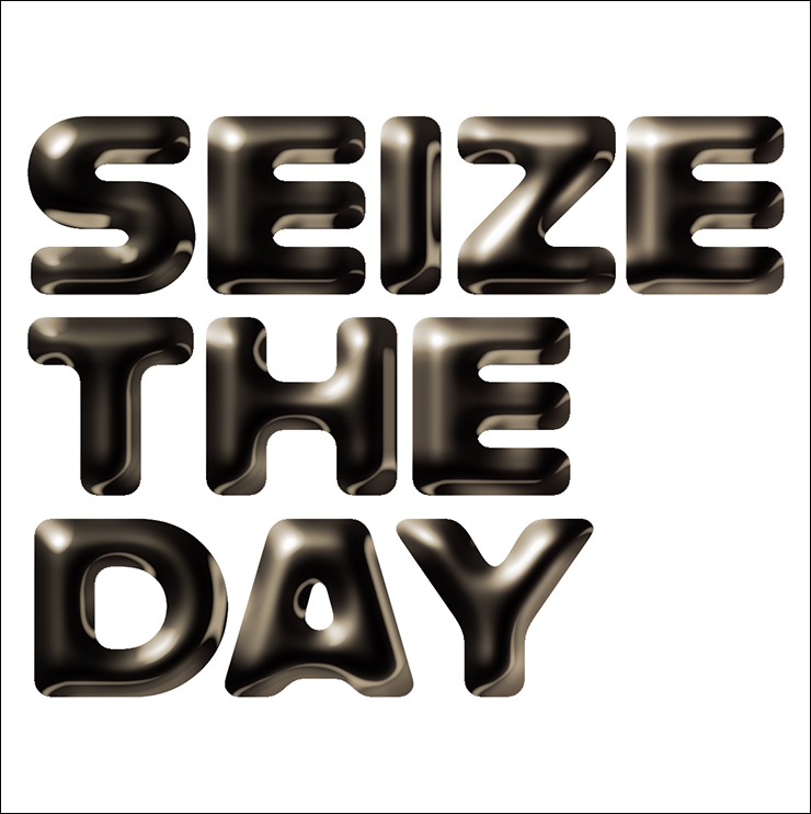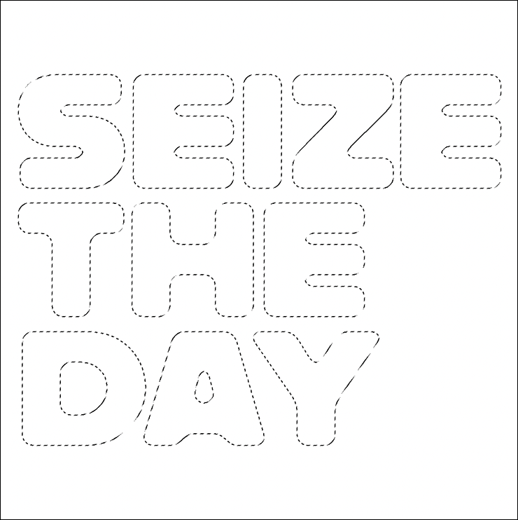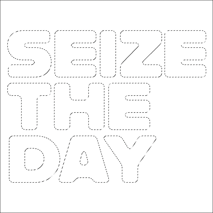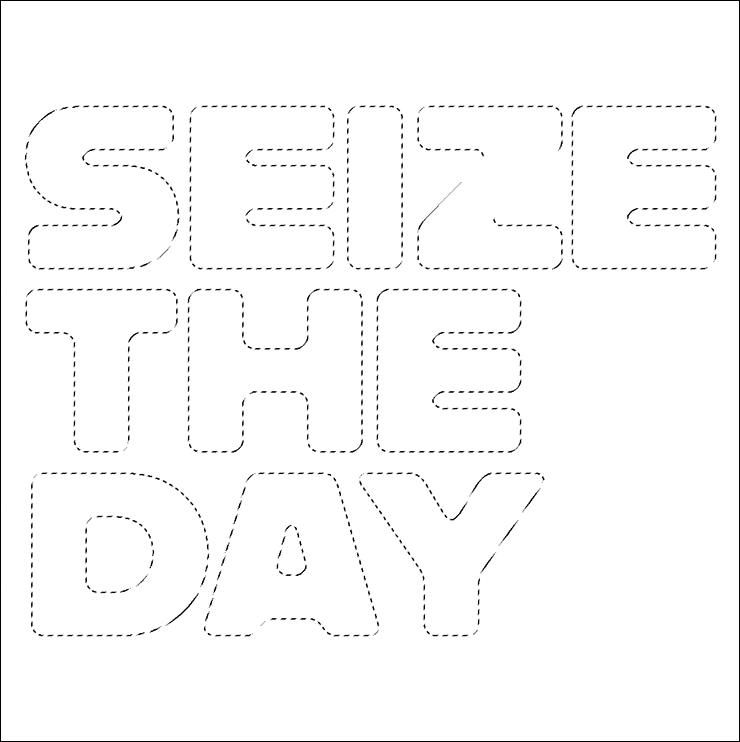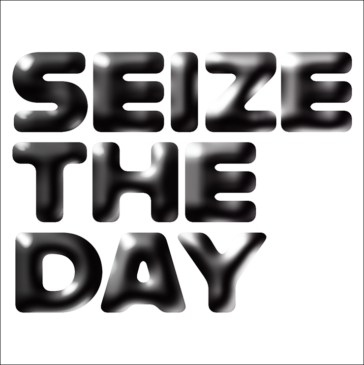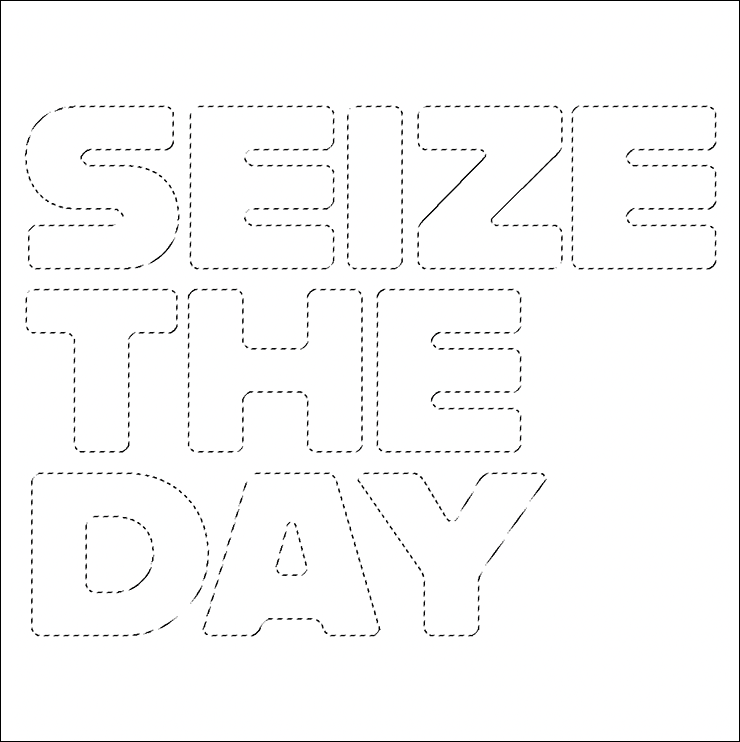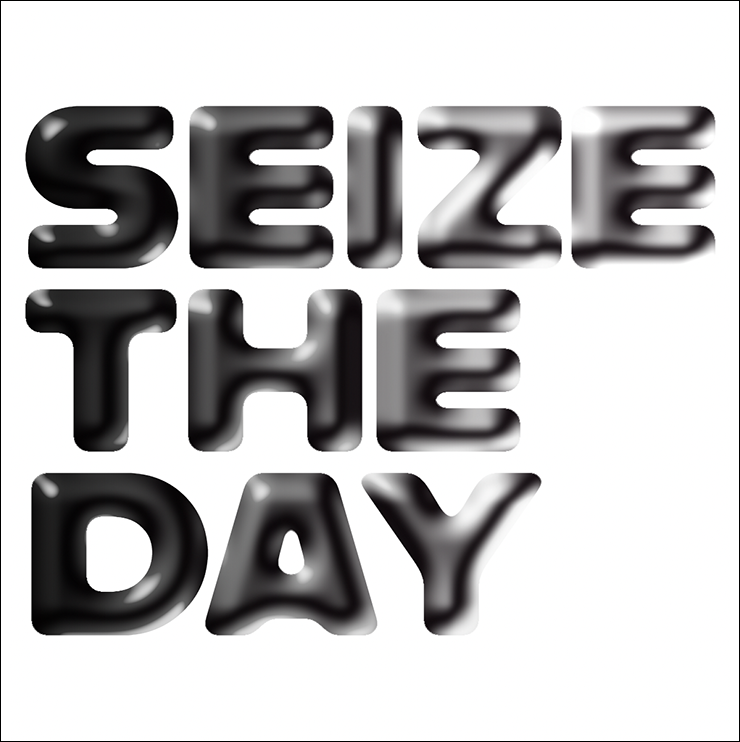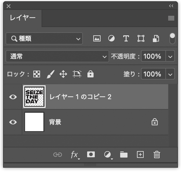 まずは新規ファイルを[幅:1200ピクセル]、[高さ:1200ピクセル]、[解像度:350ピクセル/インチ]で作成したら、横書き文字ツールで元になる文字(ここでは「SEIZE THE DAY」)を入力し、文字パネルでフォントやフォントサイズなどを設定。今回はフォントにバウハウスの巨匠アルフレッド・アーントによるデザインを再現した肉厚のサンセリフ体「Alfarn Regular」(アドビ)を選択した(図1)。