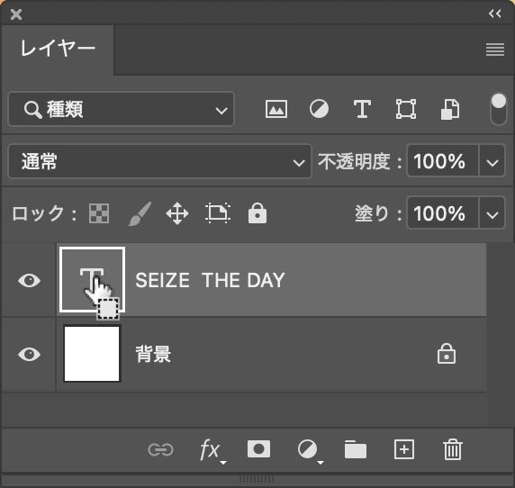 次に、レイヤーパネルでcommandキー(Macの場合。WindowsではCtrlキー)を押しながら文字のレイヤーのレイヤーサムネールをクリックして選択範囲を作成する(図2)(図3)。