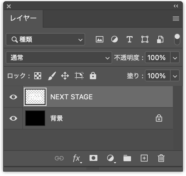 次に横書き文字ツールで元になる文字列(ここでは「NEXT STAGE」)を入力したら、文字パネルでフォントやフォントサイズなどを設定(図2)。レイヤーパネルで文字のレイヤーを選択したあと、レイヤーメニュー→“ラスタライズ”→“テキスト”を実行する(図3)。