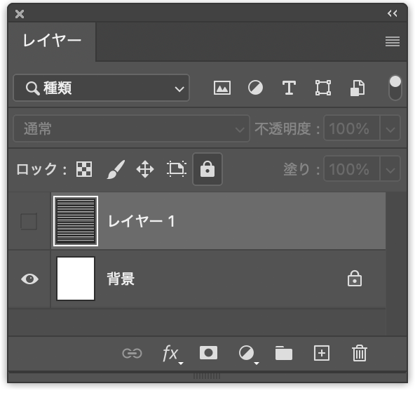 レイヤーパネルで、この縞模様のレイヤーをいったん非表示にしたら(図4)、横書き文字ツールで元となる文字を配置していく。ここでは、一文字ずつレイヤーを分け、サイズや位置を調整しながら配置していった(図5)(図6)(図7)。
