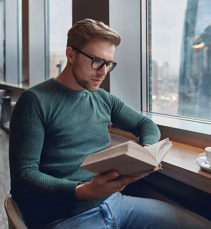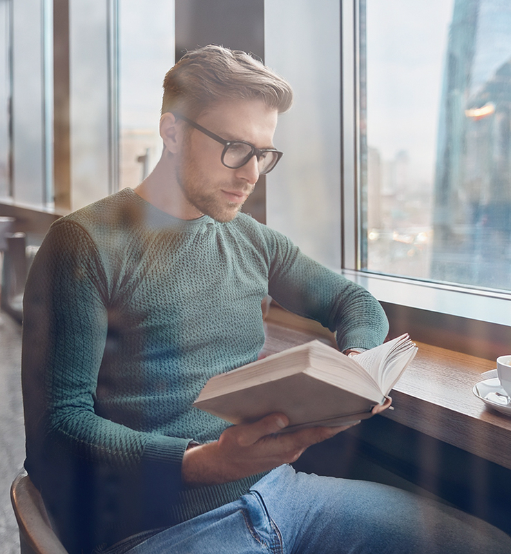 まずは新規ファイルを[幅:1200ピクセル]、[高さ:1300ピクセル]、[解像度:350ピクセル/インチ]で作成したら、元となる写真(ここでは本を読む人物の写真)を用意して配置する(図1)。