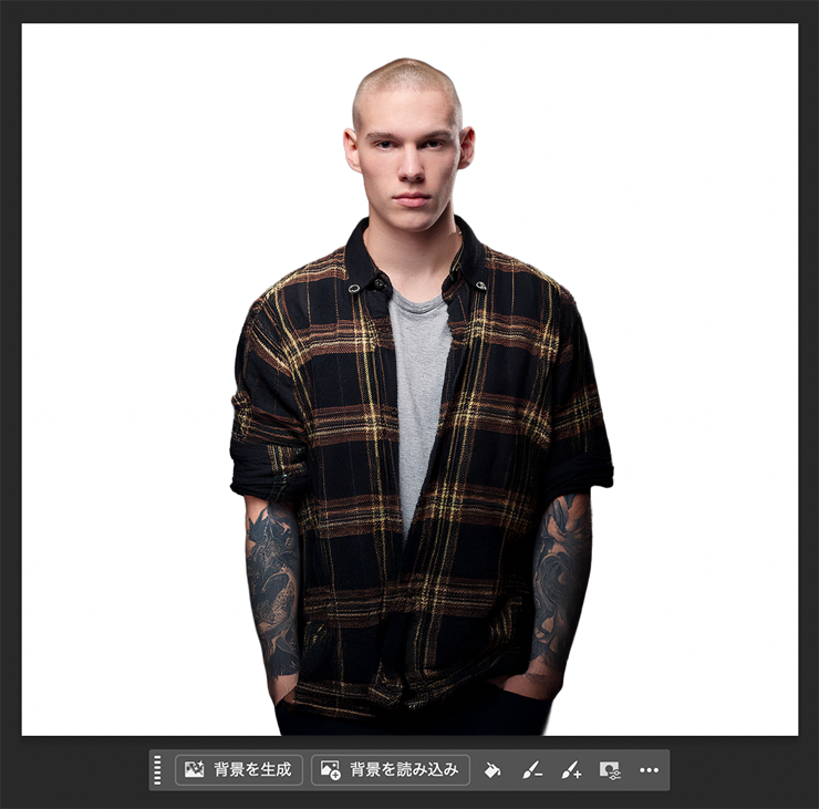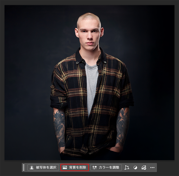 続いてコンテキストタスクバー(表示されていない場合は、ウィンドウメニュー→“コンテキストタスクバー”にチェックを入れて表示させる)の[背景を削除]をクリックして被写体の背景を消しておく(図2)。