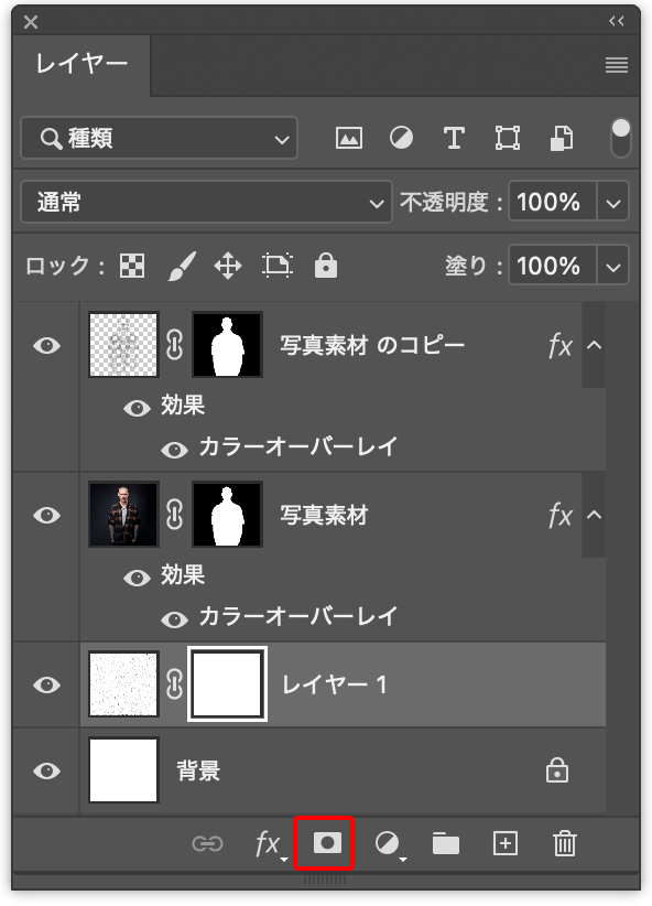 続いて、レイヤーパネルの下部にある[レイヤーマスクを追加]ボタンをクリック(図23)。