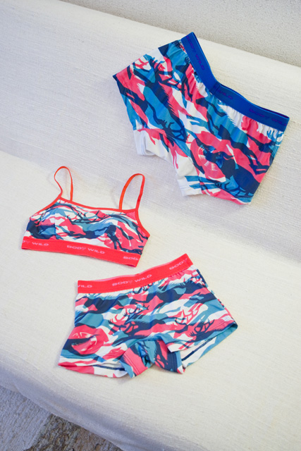 以前なら、グラフィックデザイナーが手がける衣服というとTシャツが代表的な例だったと思うのですが、なぜだか最近はそういった場面でアンダーウェアのデザインを依頼されることが増えています。最初にお話をいただいたのが、アンダーウェアを専門に手がけている「3RDWARE(サードウェア)」のもの。これは坂本龍一さんらが発起人となって始まった森林・植林のためのプロジェクト「moreTrees(モア・トゥリーズ)」の関連アイテムで、売り上げの一部が寄付されます。moreTreesは僕も賛同人の一人として、他にも機会あるごとにお手伝いしています。3RDWAREの下着はこだわりを感じさせる造りで、デザインの自由度も高かったです。最近もうひとつ手がけたのは、クラブキングのプロデュースで、グンゼからリリースされた「BODY WILD(ボディワイルド)」の「アーティスト×コラボ」シリーズのもの。このシリーズには僕だけでなく、エンライトメント、TGB Design、グルーヴィジョンズ、リリーフランキーさんなども参加しています。BODY WILDの方は量産品ならではのスタンダード感を逆手に取って楽しむ感じです。