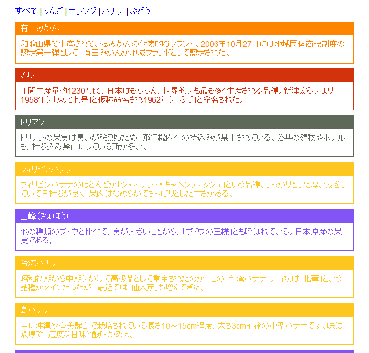 【4】classの「item」で開閉を、「orange」でフィルタリングを指定している