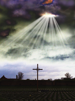 七色に変わる空、雲から落ちる光、先の見えない霧など、日常と少し違う自然風景が、神秘的な雰囲気を出すための重要な要素となる。ここでは、撮影した風景の写真を幻想的に演出する。トーンカーブにより光と影を強調し、グラデーションツールによりレンブラント光線(天使のはしご)を作成する。 >> point << 撮影ポイント ■地平線を下げて空と雲を強調する ■上空、雲、十字架を三分割にする ■十字架を中心に両サイドをシンメトリーにする |