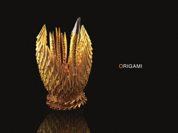 【1】折り紙のツルを被写体として扱う。まずは、イメージメニュー→"色調補正"→"レベル補正"で色の補正をしよう。ツルを明るくするために、【1-1】のいちばん右の△を少し左側にずらし、周囲部分を暗くするために、【1-1】のいちばん左の△を少し右側にずらす。このようにコントラストを強くすることで、より引き締まった印象になる【1-2】。