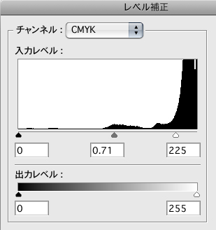 次に、イメージメニュー→“色調補正”→“レベル補正...”で 2-1 のように設定。紙地を白く飛ばす 2-2 。ここで背景をきちんと白くしておくことが、グラフィックをきれいに仕上げるポイントだ。
