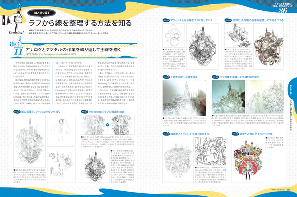 仕事にせよ、趣味にせよ、イラストを描く人は、気になることがたくさんあるはずです。基礎的なことから、線や塗り、さらには背景の描き方。そして最近では自分の作品集を自分でデザイン、制作する人もいます。そういった人は、デザインや印刷のことももっと知りたいと思っているのではないでしょうか。そこで今月の特集では「イラストを素敵に描く、見せる」ためのメソッドを紹介。イラスト制作に関して総合的に、多角的に迫ります。