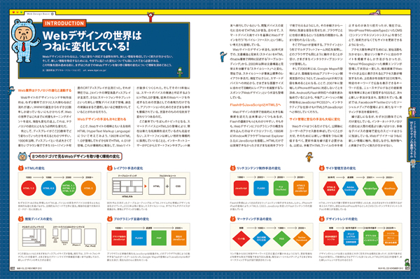 もはやデザイナーの仕事のひとつとして定着しつつあるWebデザインですが、まだまだ仕事に追われてスキルを身につけるまでに至っていない人や、技術の壁を感じて二の足を踏んでいる人も多いのではないでしょうか。Webの世界はトレンドの変化が激しいのは事実です。ただし、知識や技術の名前は変わっていても、中身の根本は過去の応用がほとんどです。しかも最近では、技術をあまり意識しなくても、デザイナーとしてセンスを存分に発揮できるようなツールが増えています。始めるなら今です。この特集をきっかけに、この先につながる基礎スキルをモノにしてください。