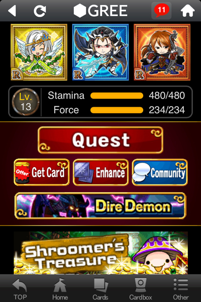 ![]() GREE Platformで提供される英語版の「探検ドリランド」。スクロールが必要なことがわかりづらくないよう、ファーストビューに必要なボタンを集めるなどの工夫が行われている(クリックで拡大) |