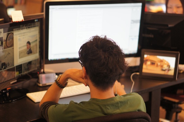 普段は遊んでるようにみえますが、仕事中はみなさんプロフェッショナル。自分も負けずにプロフェッショナルを心がけています。デザインやコーディングともに、集中の一言に尽きます。自分の世界に入り、短期集中でガンガン制作していきます。