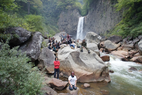▲苗名滝でも記念撮影