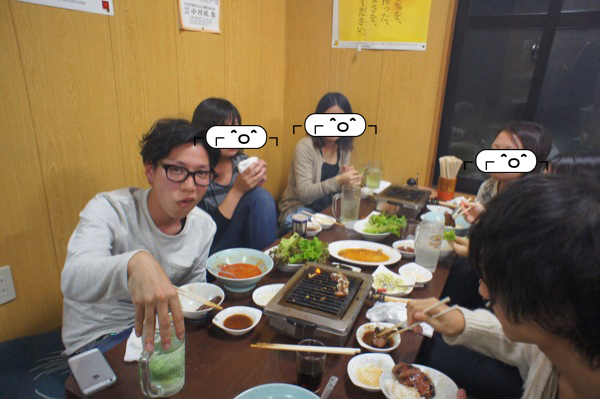 お待ちかね、夕食タイム。各チームごとに席に着き、会社のおごりで焼き肉食べ放題! 僕の所属するデザイナーチームは、片っ端から「上」と付く名のメニューを注文しました。こういうときは、甘えておいたほうが良いのです!