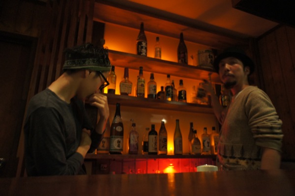 ▲バーのカウンターにて。(左から)僕、そして紳さん