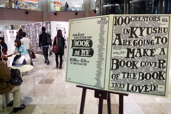 「Book at Me」の展示が開かれているイムズの会場に到着。各々来ていたネストグラフィックスのみんなと合流し、いろんなデザイナーさんが作ったブックカバーを一緒に見て回ります。ブックカバーと言えども、さまざまな視点から作られた作品が多く得るものが多いです。気になる作品のメモを取りながら、最後には自分好みのブックカバー3点に投票して、ブックカバーのセットをもらいました。