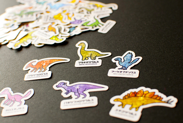 今度はシールのカッティング作業に入ります。今やっているのは四国のデザイナーさんから依頼のあった恐竜もの。かわいく出来上がりました。