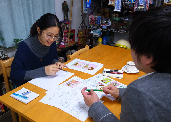 昨日提出した4コマ漫画のラフのOKが出たので、早速描き始めることにします。ペンタブレットでひたすら描いていきます。ペンタブレット歴は長く、中学生の時に誕生日で買ってもらってからというもの、家でもずっと愛用中。一部提出したラフと違う感じで描きつつ、全体の雰囲気を見て良い具合であれば、一度変更したものを提出してみます。