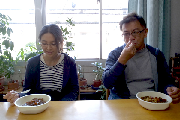 今日は久しぶりにみんなで外食へ。カレーを注文したら、河北さんとメニューが丸被り。おまけに今日の服装がかなり被っていたので、面白がられて写真に撮られました(笑)。
