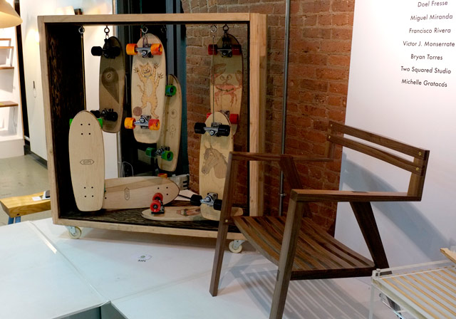 ![]() 「プエルトリコのデザイン」コーナー。木製のスケボーラックは愛好者の多いアメリカの市場を意識? |