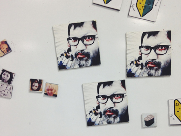 ▲個人のアイコンを使用したマグネット。メガネの男性のマグネットが「antipopさんが見てます」マークです