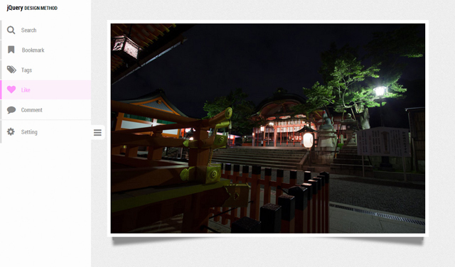 今回のサンプルでは、開閉ナビゲーションの仕組みのほかに、lazyloadプラグインを使用してWebページで使用する画像をページ表示時に一度に読み込むのではなく、ユーザーのページのスクロールにあわせて、その画像が表示されるべき位置に達したときにその画像が読み込まれる「画像遅延読み込み」という手法も実装しています。これはサンプルのように大きめの画像を大量に扱うページなどに実装すると、サーバー付加の軽減や、回線速度が遅い環境での表示速度向上を期待できるメリットがあります。