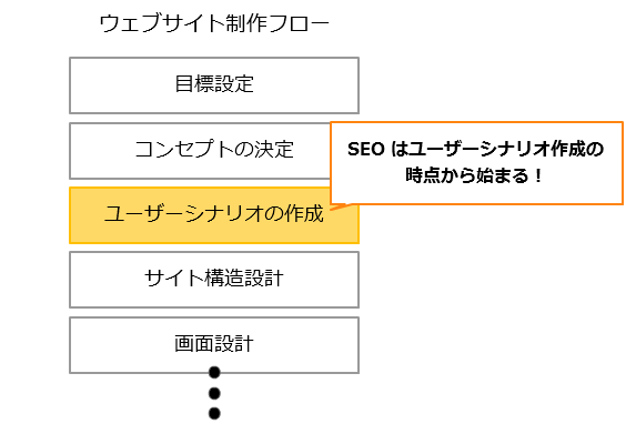 また後述しますが、現在のSEOの基本的な考え方として、Webサイトに訪れるユーザーの検索ニーズを事前に把握しておく必要があります。そのため、Webサイトを制作する初期段階――ユーザーシナリオを用意する段階からSEOははじまるのです。