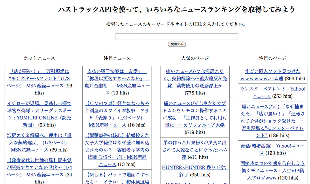 今回は、インターネット上の人気ページや話題をランキング化するパストラックが提供しているAPIを使って、いろいろなニュースランキングを取得する方法を解説する。パストラックAPIは、とても手軽に使えるWeb上の視聴率的なデータを取得できるユニークなWeb APIなのでぜひ試してみよう。