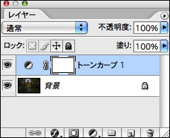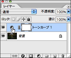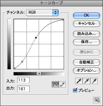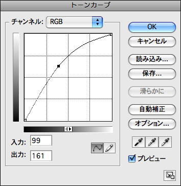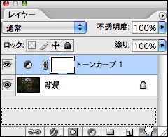 3.トーンカーブを設定し直したい場合は、レイヤーパレットで調整レイヤーのアイコンをダブルクリックしてダイアログを開く。先に設定したカーブがそのまま残っているので、これを変更すればよい。