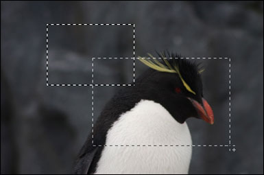 ▲選択ツールを選択した状態でshiftキーを押すと、ポインタに「+」マークが表示される。この状態でドラッグして作成した選択範囲は、既存の選択範囲に追加される。