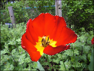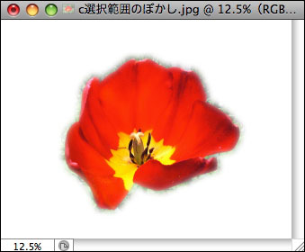 2.選択範囲メニューの“選択範囲を反転”を実行し、deleteキーを押して周囲を削除すると、選択範囲の境界がぼけているのが確認できる。