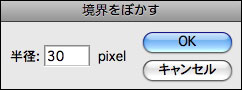 1.選択ツールで選択範囲を作成し、選択範囲メニュー→“境界をぼかす”を実行してダイアログを開いて、[半径]にぼかす範囲を入力する。