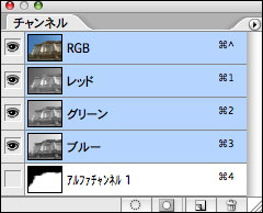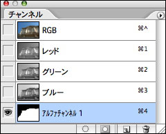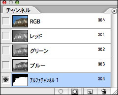 ▲選択範囲が保存されたチャンネルパレット。チャンネルをクリックすると選択範囲が画像として表示される。