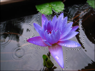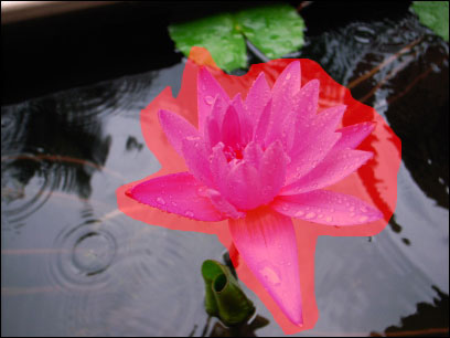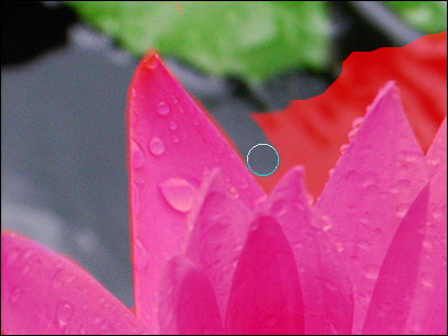 クイックマスクモードで選択範囲を作成してみよう。ここでは画像の花の選択範囲を大まかに作成し、クイックマスクモードできれいに整える。