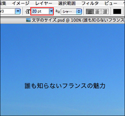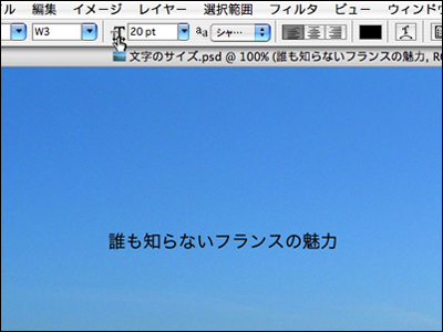 文字のサイズやフォント、色は1文字ずつでも設定することができる。文字ツールを選択したら、設定を変更したい文字をドラッグして選択状態にして、各種設定を行う。よければ、オプションバーの[現在の編集をすべて確定]ボタンをクリックする。