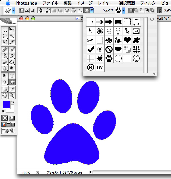 パスやシェイプはペンツールを使って描くほかに、長方形ツールや多角形ツールなどを使う方法もある。また、カスタムシェイプツールを選択し、オプションバーの[シェイプ]をクリックすると、矢印やハート形といった図形を簡単に描くことができる。