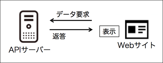 次に押さえておきたいのはAPIファーストで、APIを中心にWebサイトや、アプリケーションなどの設計を行います。考え方としては、コンテンツをAPIサーバーに集約し、Webサイトやアプリケーションがコンテンツをリクエストします。そのリクエストに応じてAPIサーバーがコンテンツを返答し、Webサイト上に表示を行うということです。