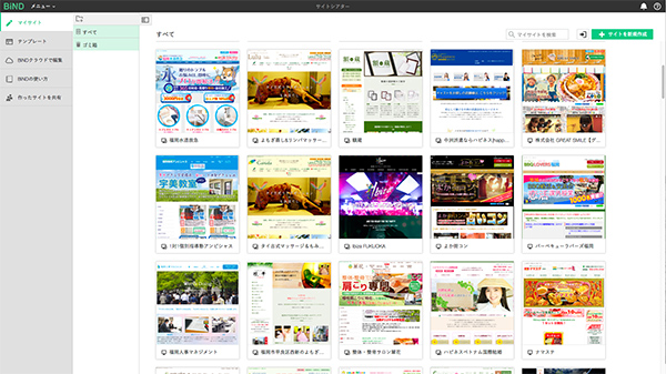 もちろん、こういったWebサイトデータの蓄積ができたのは、BiNDの豊富なテンプレートのおかげだと思います。起業当初は、業種別の知識が少なかったため、BiNDのテンプレートから制作していました。その後、少しずつお客様の細かい要望を聞いていくうちに、BiNDのテンプレートを基本にカスタマイズして私自身のオリジナルテンプレートが揃ってきたのです。