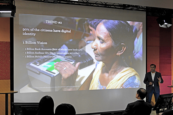 同氏は、インドで最近起こった破壊的改革の例として、インドの巨大コングロマリットであるリライアンス・インダストリーズによって2016年に設立された携帯キャリアのジオの例を挙げ、データプランの料金がその年を挟む4年間で93%も下落して世界で最もローコストになったことを指摘。その結果、インド全体の月間のデータ利用量は15倍に増え、国民の約9割がモバイルインターネット環境を享受できていると言及した。
