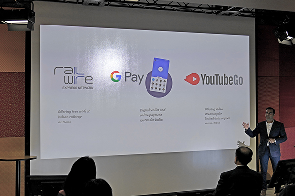 インドでは、日本でも普及しつつある鉄道駅における無料Wi-Fiや、グーグルの電子決済システムであるグーグル・ペイも導入されているが、通信状態が悪い地域でもユーチューブの動画をストリーミングまたはダウンロードして楽しめるユーチューブ・ゴーは、元々インド向けサービスだったものが世界130ヵ国(日本は除外)に広まった経緯がある。