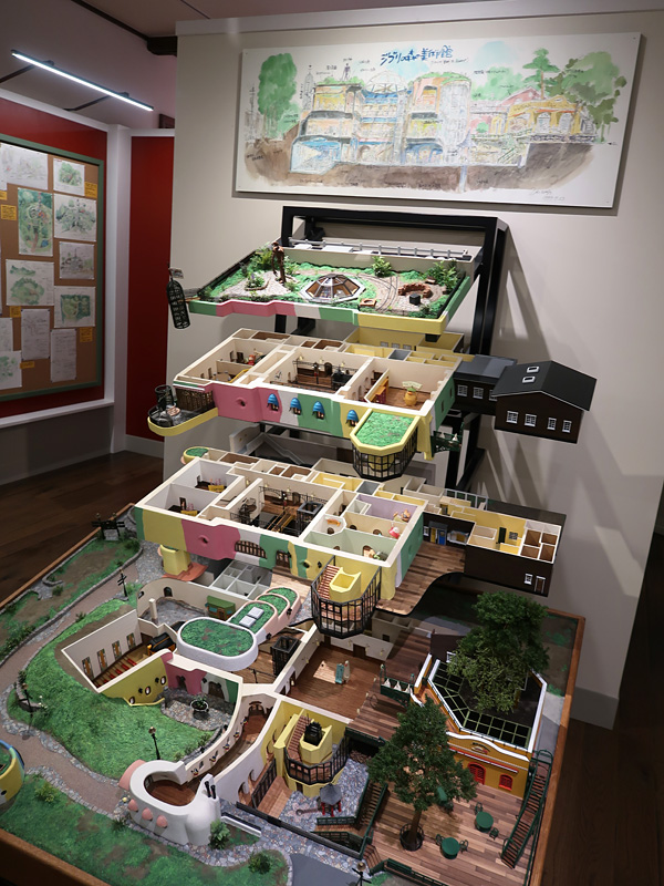 さらに美術館全体を再現した立体模型も。複雑な構造の美術館館内を巡っていると、つい自分がどこにいるか分からなくなってしまうが、こうやって外側から眺めると美術館の全体像がつかみやすい。細かい部分まで緻密につくられており、近寄って見るとまるで模型の中に吸い込まれるようだ。