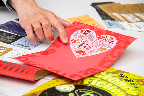 ▷デザイナーの心をくすぐる多彩な紙との組み合わせでの色表現