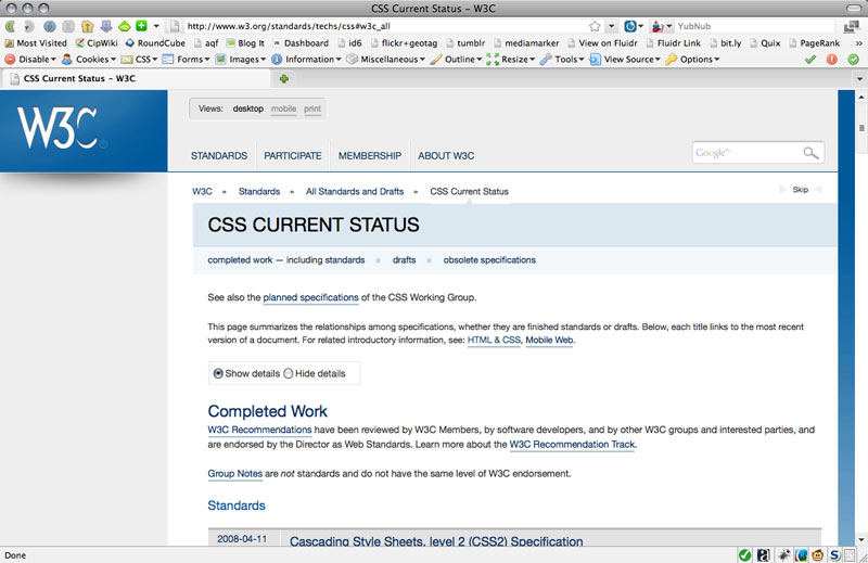 ▲World Wide Web Consortium(W3C)では策定の状況などが確認できる