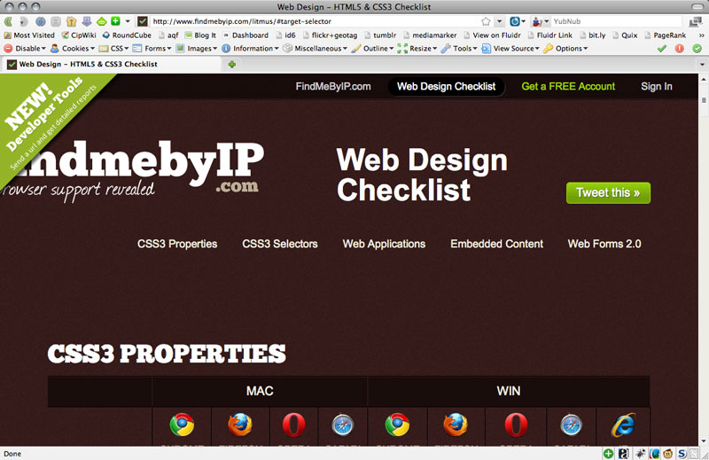 ▲「FindMeByIP.com」内にある「Web Design Checklist」。現状のブラウザ毎のサポート状況をまとめたサイトなどは定期的にチェックしておきたい