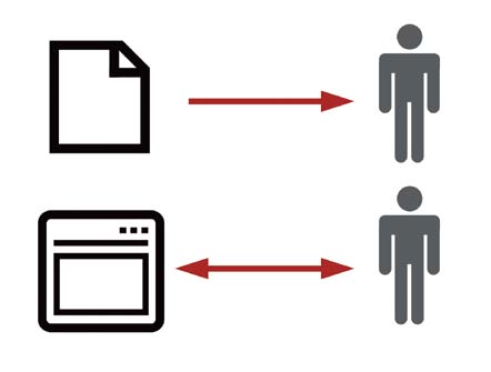 紙媒体は単一方向に対してWebは双方向、または多方向との関係にある