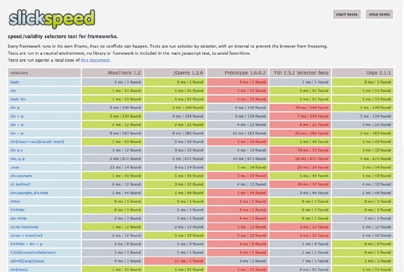 「SlickSpeed Selectors Test」(mootools.net/slickspeed/)。