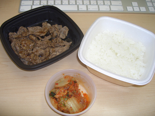 吉野家の割引クーポンをもらってたことを思い出したので、今日は奮発(?)してカルビ焼定食を初めて買ってみました。お肉も普通においしかったけど、それよりも初めて食べた吉野家のキムチの美味しさに感動しました(笑)。