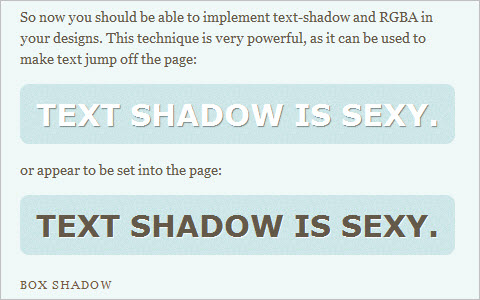 ここでは、RGBA環境でtext-shadowおよびbox-shadowプロパティを使うためのチュートリアルが紹介されている。
