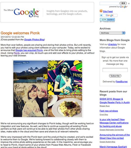 米Google、オンライン写真編集サービスのPicnikを買収