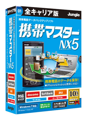 (株)ジャングルは、携帯データバックアップソフトの最新版「携帯マスターNX5」シリーズを2010年4月22日(木)より、全国の量販店およびECサイトで発売開始すると発表した。